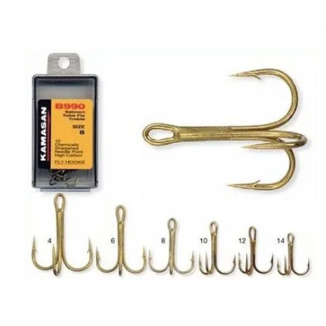 Kamasan B990 þríkrækjan er fáanleg í nokkrum stærðum: #6, #8 henta í stærri og sverari túpur, #10 og #12 í minni og grennri og #14 í gárutúpur.