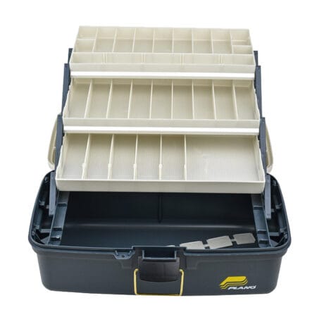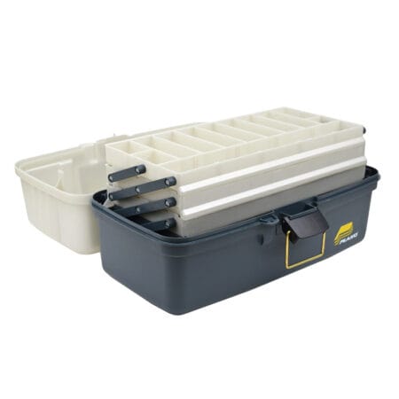 Hefðbundinn Plano veiðikassi með þremur skúffum og stóru hólfi þar undir.