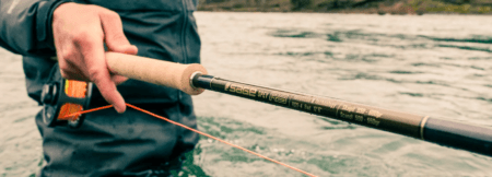 tvíhendukastsins; þegar línunni er lyft úr vatni á auðveldan hátt, stöngin er