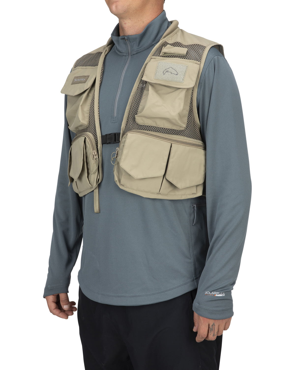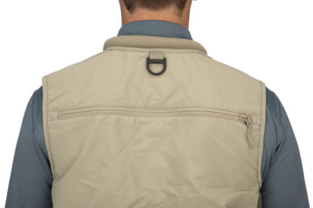 Létt vesti. Fjölmargir vasar. Stangarberi að framan. D-hringur á baki.