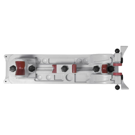 support. The rear base features two adjustable offset clamps for a tight